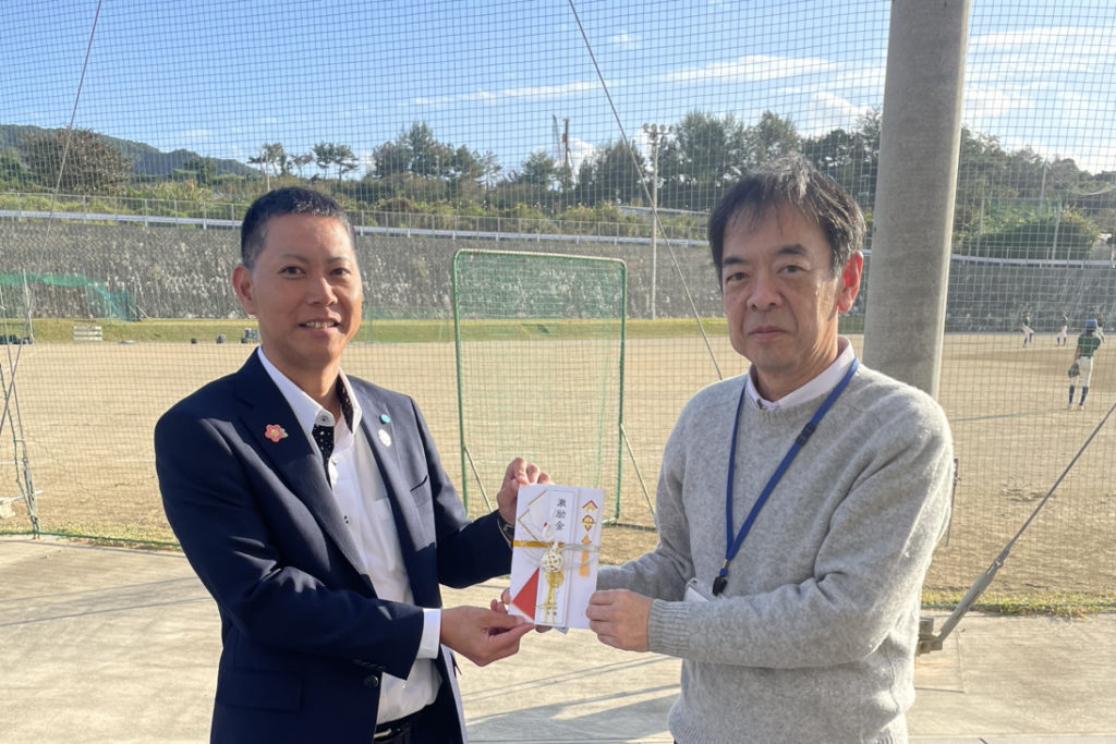 先日、女子中学生新人ソフトボール大会で見事優勝を果たし、沖縄県代表として「九州中学生選抜ソフトボール大会」という大きな舞台に挑むことになった、恩納村立うんな中学校女子ソフトボール部の皆さんへ、活動を支援するための寄付をさせていただきました。